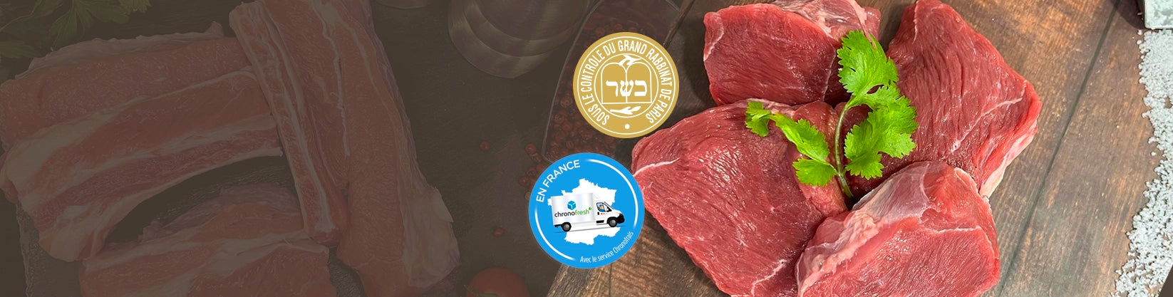Vous avez des besoins en viandes pour Chabbat ou les fêtes, vous êtes en déplacement, vous n’avez pas le temps de vous déplacer en boucherie ? Notre boucherie en ligne est à votre disposition pour vous livrer partout en France.